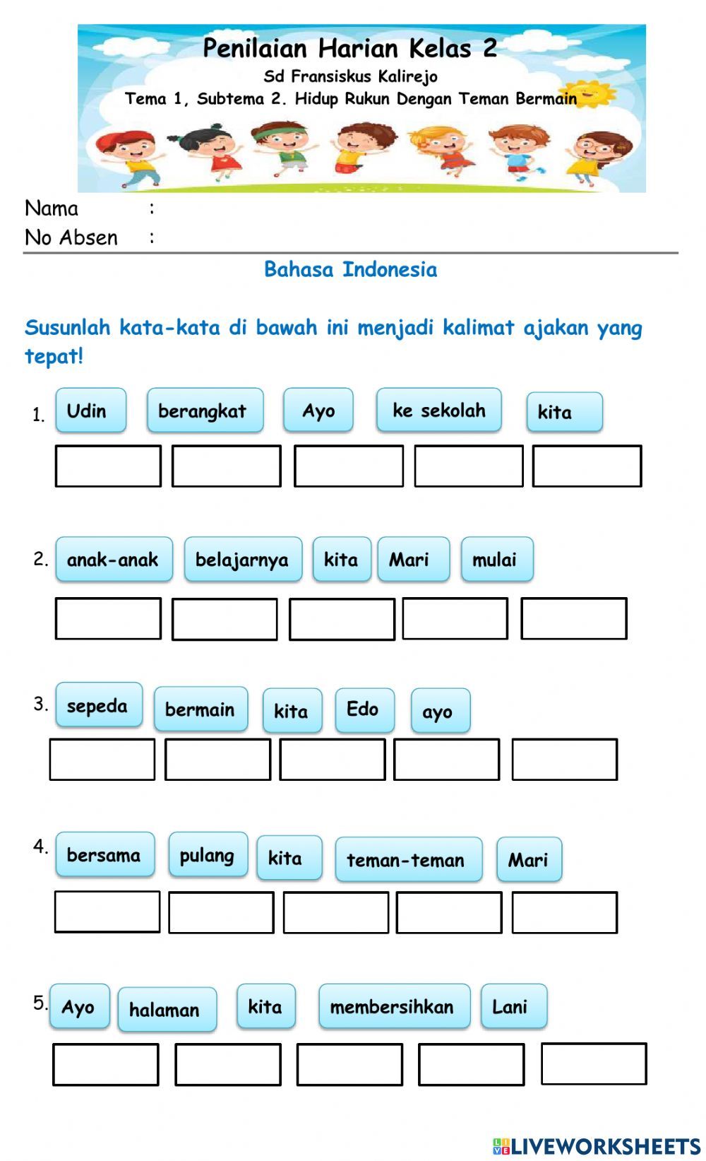 - Predikat: mengerjakan