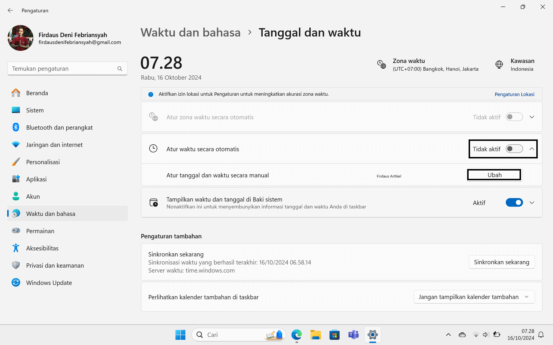 Cara Mengatur Jam di Laptop Windows 11 Secara Manual