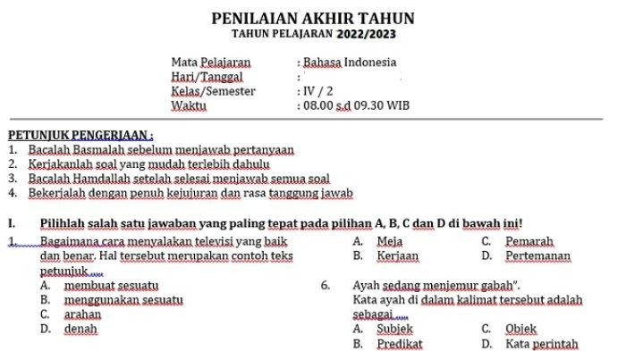 Latihan Mendengarkan: Siswa diberi kesempatan untuk mendengarkan teks atau rekaman audio dan menjawab pertanyaan terkait. Aktivitas ini membantu meningkatkan kemampuan mendengarkan dan pemahaman.