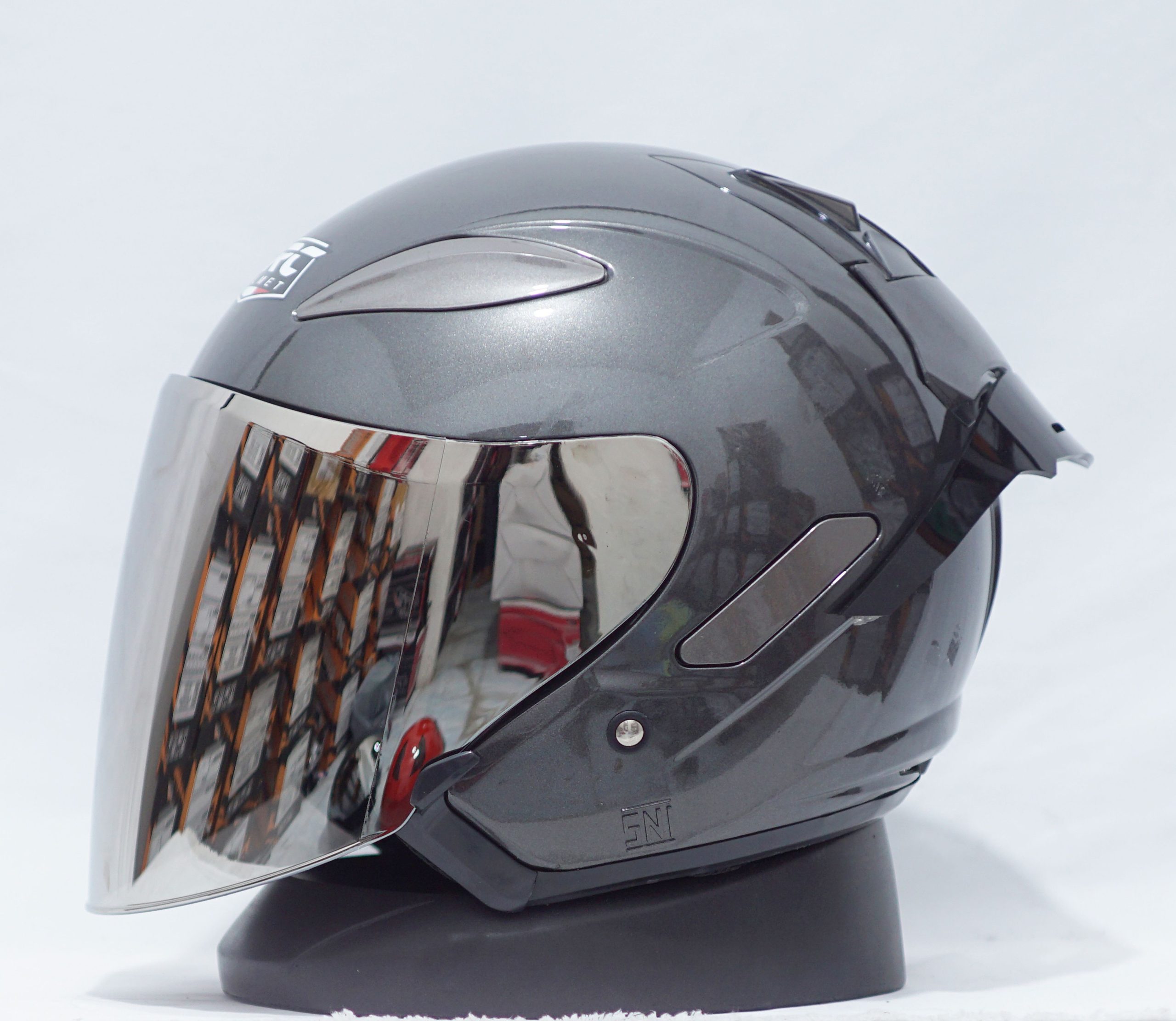 Helm ini dilengkapi dengan lampu sein LED yang bisa menyala otomatis sesuai arah belokan. Selain itu, helm ini juga memiliki speaker Bluetooth dan mikrofon untuk komunikasi sambil berkendara. Desainnya modern dan cocok untuk pengendara urban. -